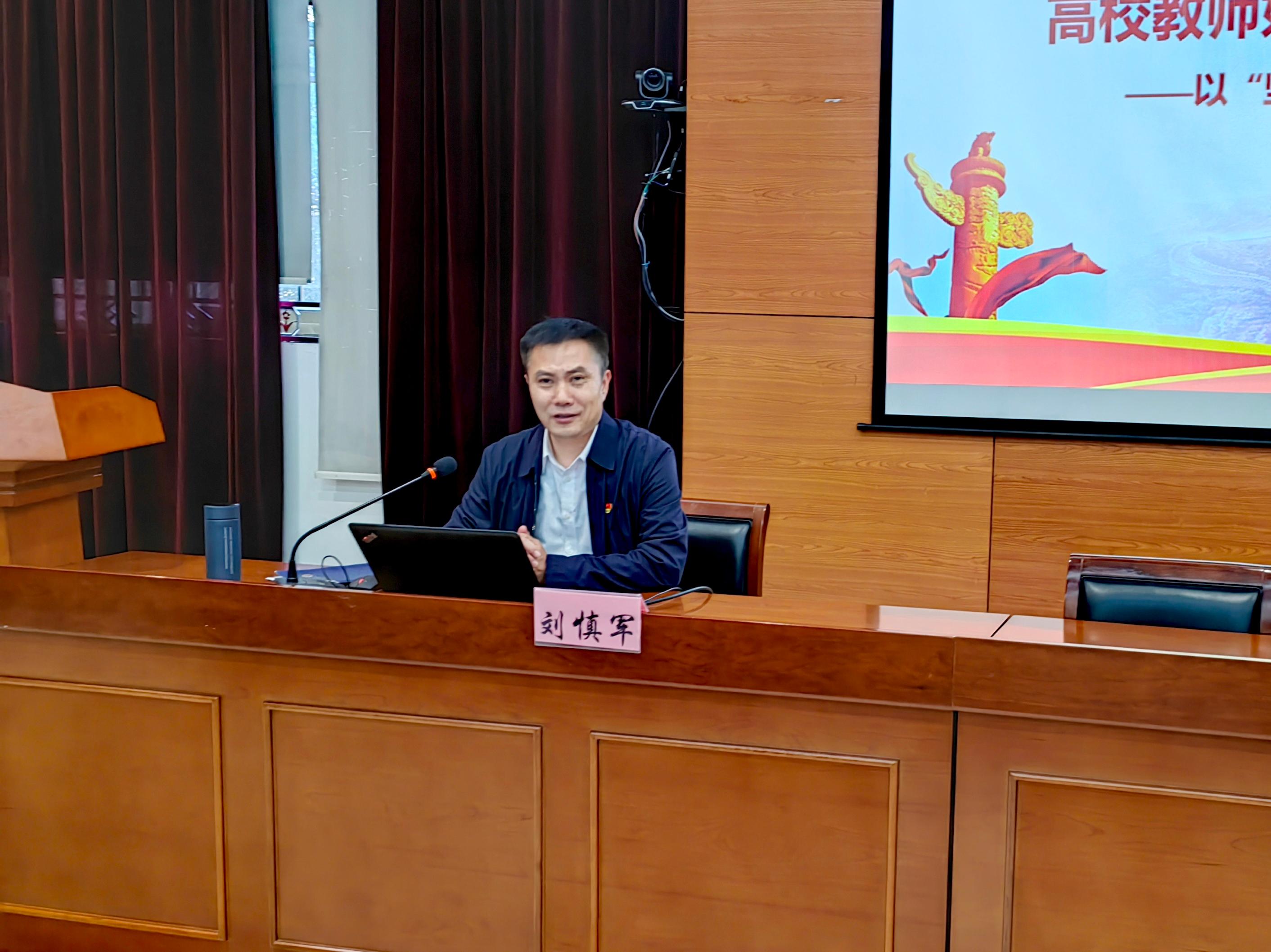 【专题讲座】刘慎军副董事长为教师上党课 2022-11-26 12:26访问: 11月25日下午,公司党委常委、副董事长刘慎军以“高校教师如何加强政治理论学习——以‘坚定文化自信’专题学习为例”为主题,为304.cam永利集团、国际教育学院(国际合作与交流处)教师上了一堂生动的党课。活动由医...