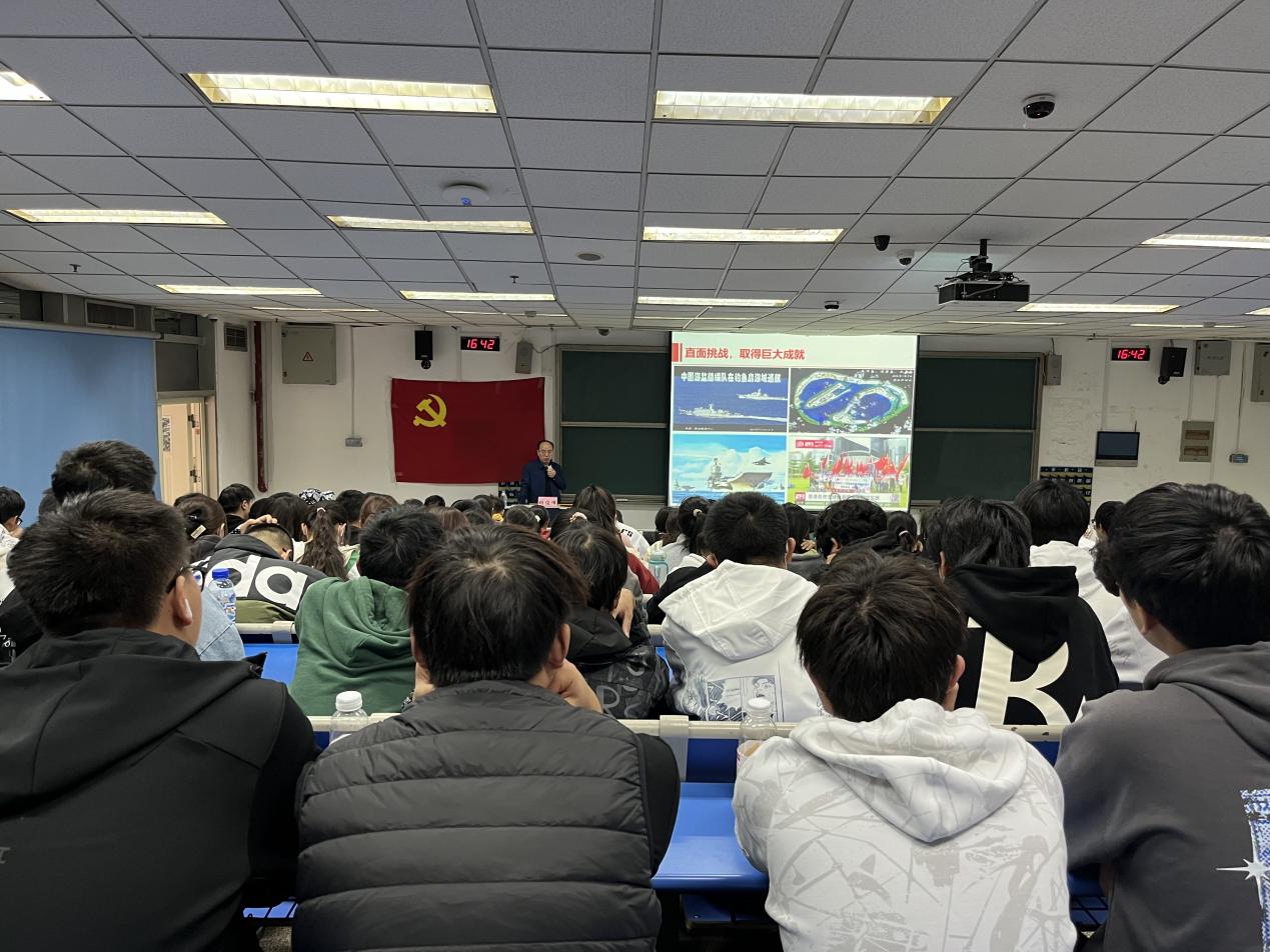 此外,胡书记为同学们讲述了当前的国际局势,如中美间大国博弈、中国航天技术发展、华为芯片使用等,勉励同学们面对百年未有之大变局,要有坚定的理想信念,不畏浮云遮望眼,要努力学习知识,不断提升自我,增强责任意识,勇于肩负起时代的使命。