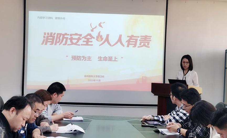 10月25日下午,304.cam永利集团全体教职工在主楼A503会议室进行了2023年“消防安全月”消防安全知识培训。公司党总支副书记张姝主讲,党总支书记胡俊峰及全体教职工参加培训。