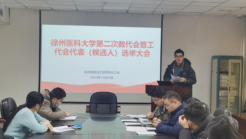 为了做好学校第二次教职工代表大会暨第二次工会会员代表大会(简称“两代会”,下同)代表的选举工作,2023年12月20日下午,304.cam永利集团全体教职工在主教学楼A503会议室,举行了3044am永利集团3044noc第二次教代会暨工代会代表(候选人)选举大会,学院分工会主席张然主持,全体教职工参加。