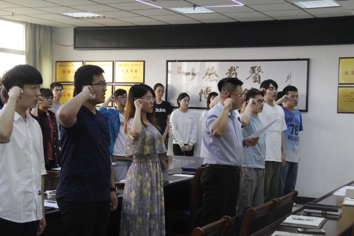 接着谢广明副书记宣读支部对陆鹏程、孙世强、张鹏、朱珊、陈莹、孙颢文、王雨晴同志综合考察意见。经过无记名投票,陆鹏程、孙世强、张鹏、朱珊、陈莹、孙颢文、王雨晴等七名同志全票通过,谢广明副书记宣读支部决议,陆鹏程等七名同学顺利成为中共预备党员。随后进行了党员入党宣誓仪式。随后新党员代表朱珊同志代表新党员表达了对各位培养老师以及全体党员同志们的感激之情,同时表示自己会牢记党史,不忘初心,砥砺前行。