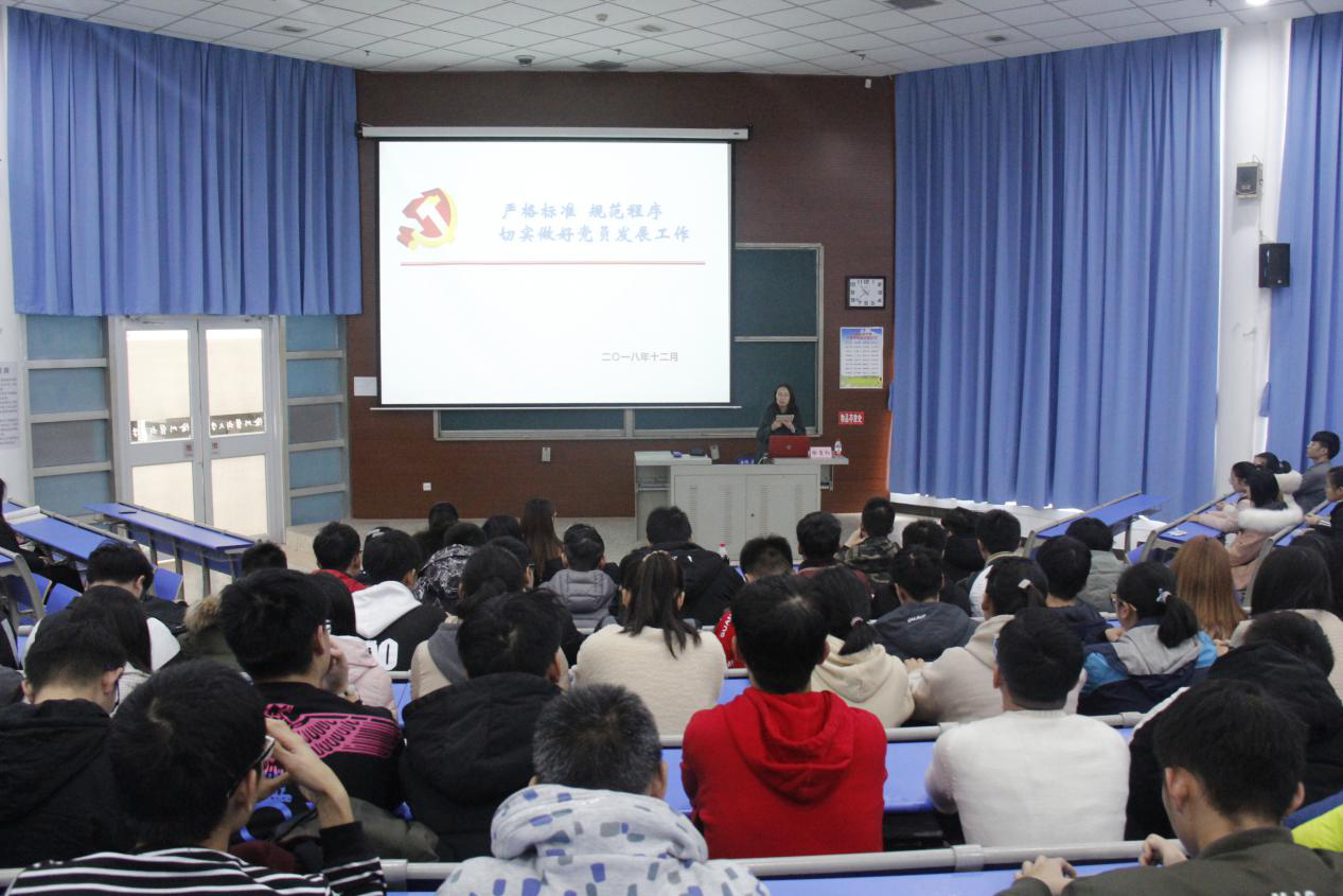 2018年12月21日,医学信息学院分党校召开了“严格标准,规范程序, 切实做好党员发展工作”主题新生党课。本次党课邀请公司党委组织部副处级组织员徐夏红老师主讲,医学信息公司党总支副书记赵宁,辅导员老师以及18级全体新生参加了本次会议。医学信息学院员工党支部书记张姝老师主持。