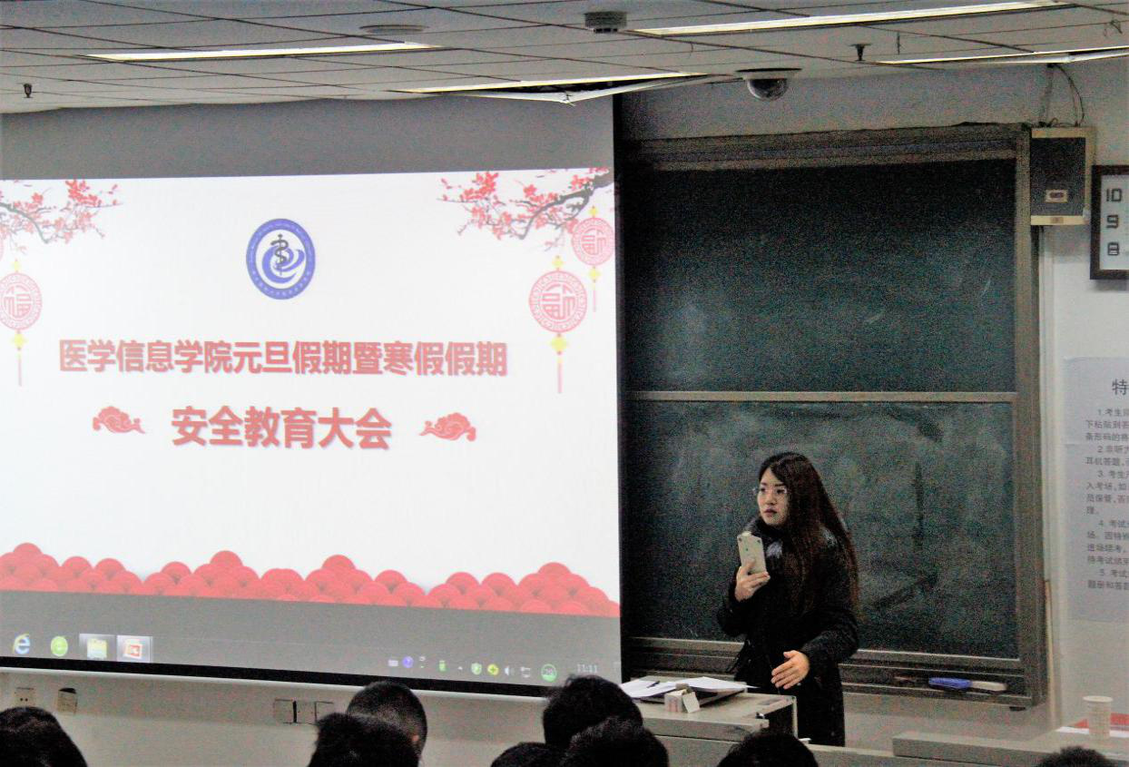 为贯彻落实学校寒假安全稳定工作通知要求,提⾼师⽣的安全意识,确保师生度过平安祥和的假期,医学信息学院在放假前采取多种措施开展安全教育。