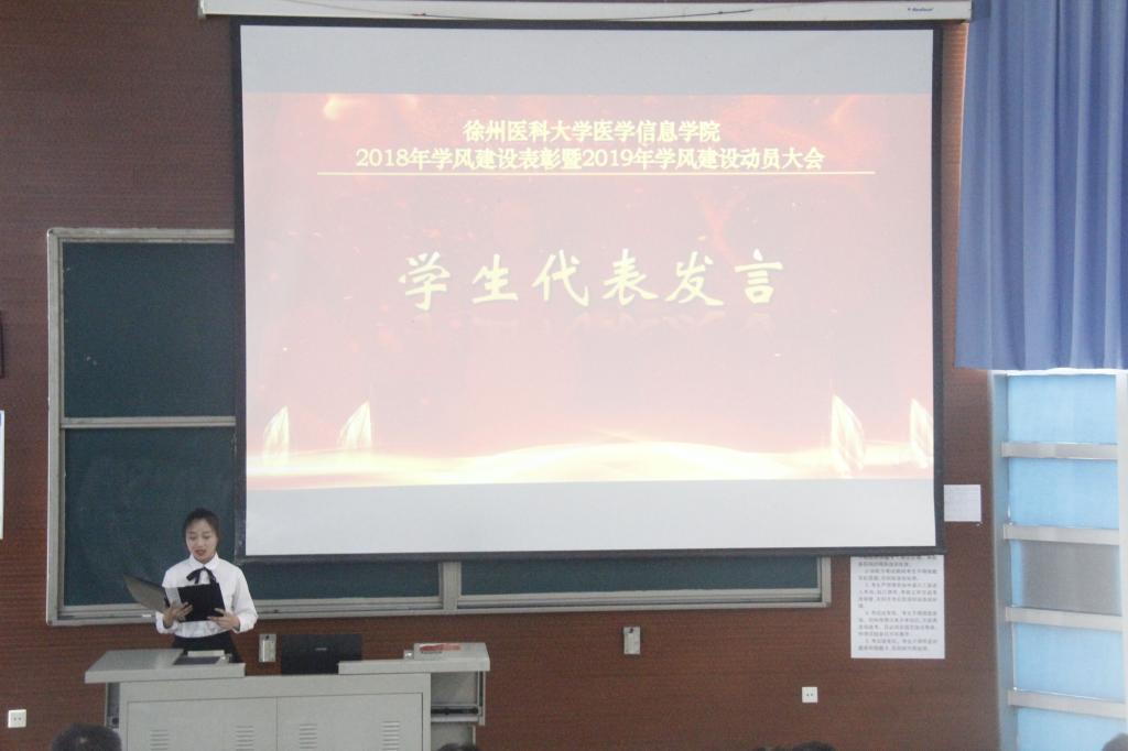 大会开始,胡俊峰副经理致辞。他介绍了公司2018年在学风建设中取得的各项成绩,并对2019年的学风建设进行动员,他鼓励同学们继续发扬“医工结合”的专业优势,不断增强信心,以先进典型为榜样,勇于抢抓机遇,积极营造优良学风氛围和科研创新氛围,共同推进医学信息学院的发展。