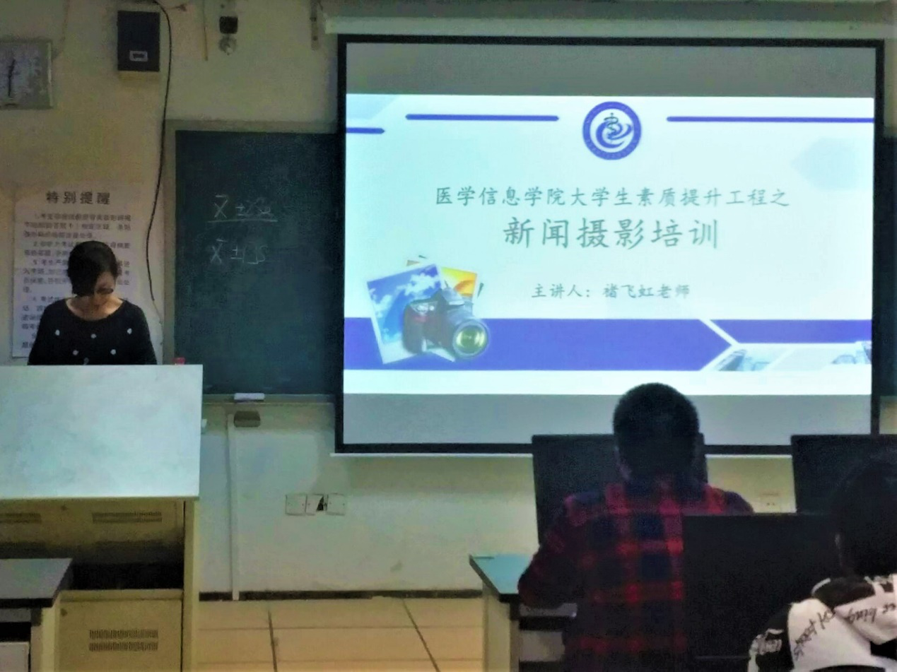 为向公司摄影爱好者普及摄影知识和技巧,2018年10月25日,医学信息学院在主楼A302举办了老员工素质提升系列活动之新闻摄影培训活动。本次培训邀请到现代教育中心褚飞虹老师主讲。学院员工会宣传部全体成员,各班宣传委员以及各班摄影爱好者参加了本次培训。