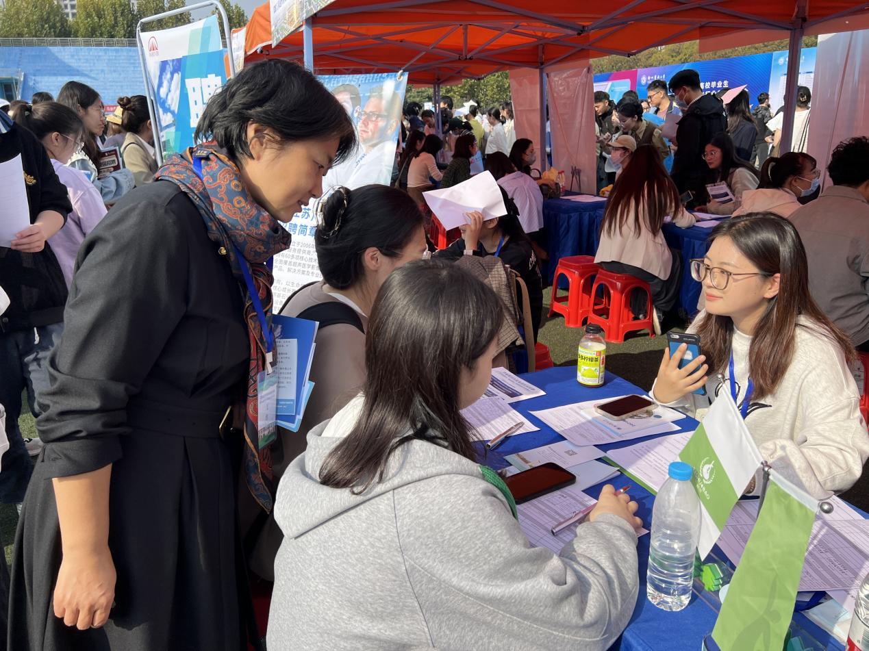 公司党总支书记胡俊峰、副书记张姝、各专业负责人、毕业班辅导员、班主任老师深入招聘会现场,与用人单位沟通交谈,积极了解用人单位的人才培养要求以及行业需求,并且同毕业生进行了亲切地交流,鼓励毕业生抓住秋招热潮,积极应聘,希望毕业生们在本次双选会中找到自己心仪的岗位。