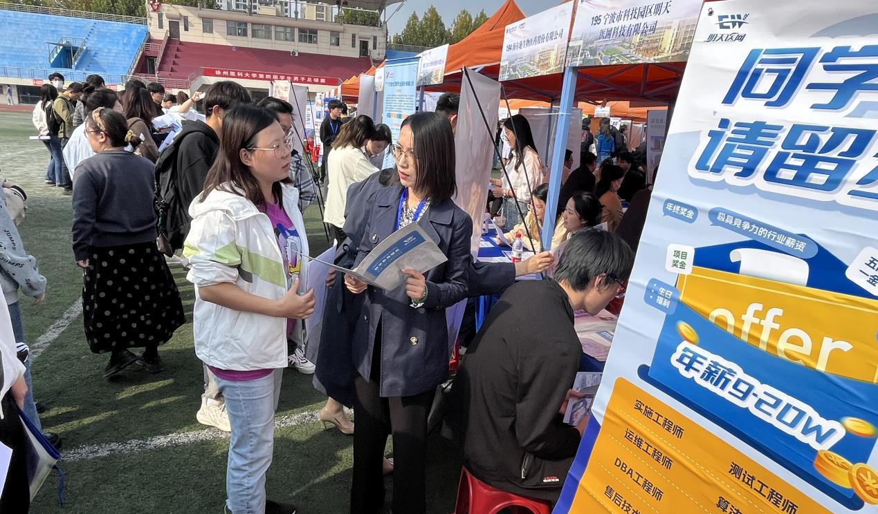 招聘会现场气氛热烈,毕业生们着装整齐,手持简历,主动寻求心仪岗位,与用人单位深度交流。各用人单位也热情地向同学们介绍单位基本情况、人才需求、薪资福利等。现场面试也如火如荼地展开,不少同学成功递出简历,流利地回答出面试问题。部分低年级同学也到场观摩,感受招聘氛围。