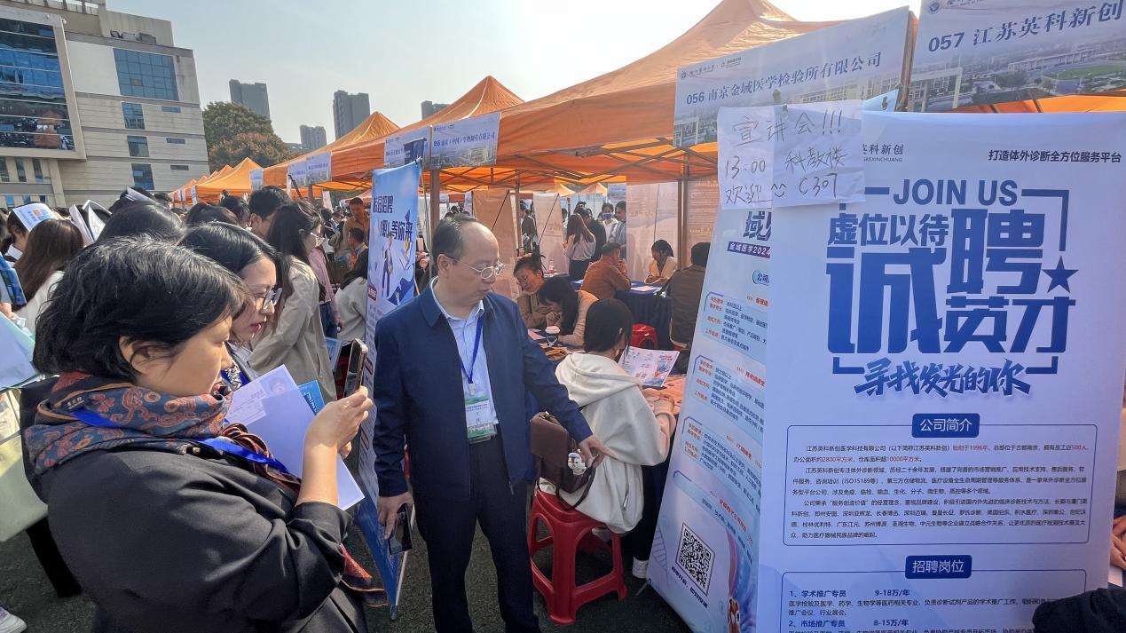 10月28日,公司举办了江苏省医药卫生行业暨3044am永利集团3044noc2024届毕业生专场招聘会,吸引了公司多家附属医院等知名医院以及南京海泰医疗信息系统有限公司、英科新创医学科技有限公司等优秀企业报名参加,其中,为公司智能医学、计算机科学与技术、医学信息工程三个专业提供优质岗位近百余个。公司2024届本科生和研究生毕业班同学到场积极应聘,低年级同学也纷纷到现场,提前感知就业形势和各单位招聘需求。